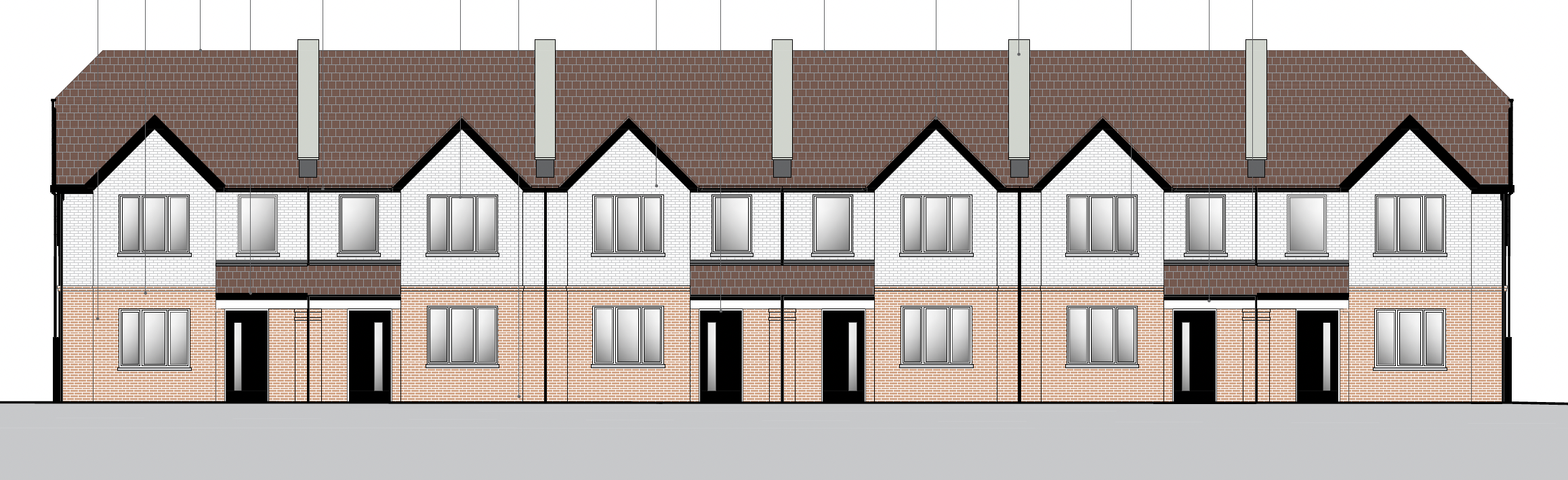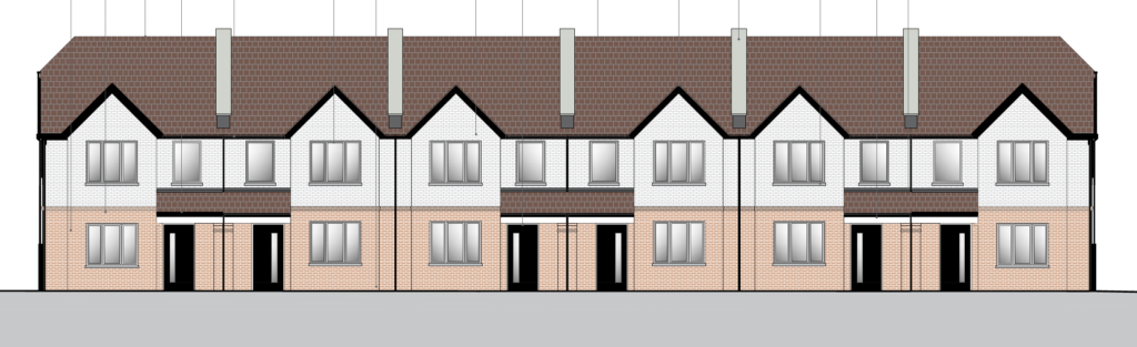 The housing element comprises six identical terraced houses, each a four-bedroom, seven-person family home. The buildings would be 2.5 storeys high, with accommodation in the roof space, reflecting the height of neighbouring properties along St Martin’s Approach. Each house would have a small front garden, a rear garden and one allocated parking space.